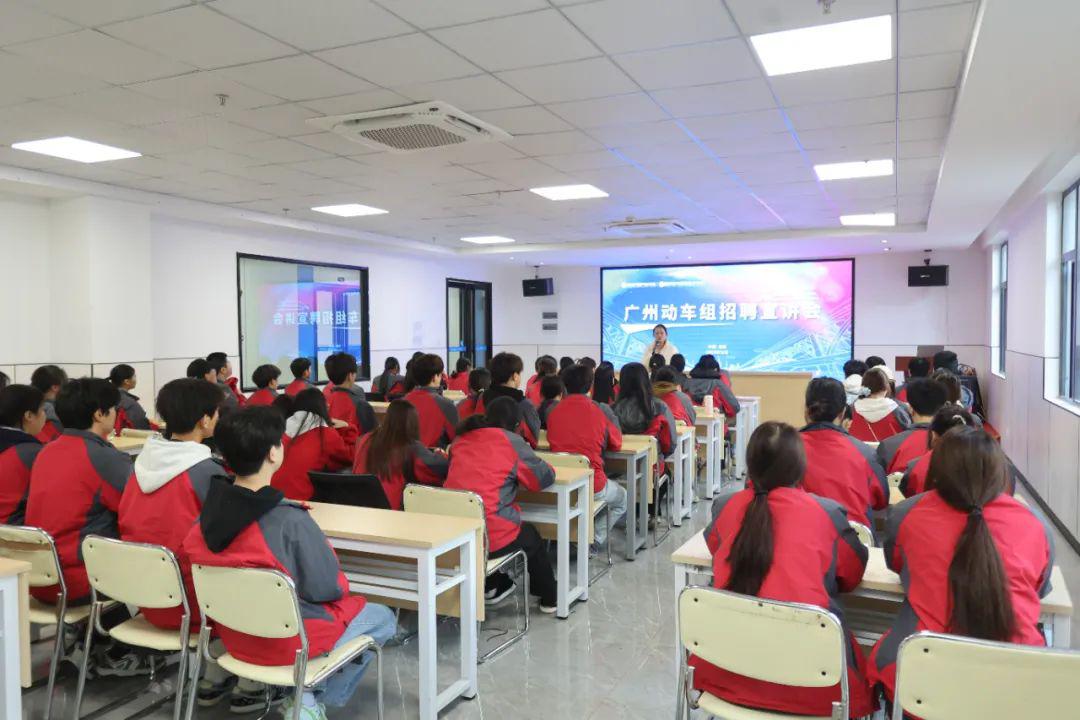 12月5日下午,广铁动车组面向我校城轨专业毕业生进校招聘。本次校园招聘会主要招聘客运乘务员、餐车乘务员、安全乘务员等岗位。通过校园招聘,学校和企业可以更好地共享资源,为学生提供更多的就业机会,为企业输送更多的优秀人才。此次城轨企业的进校招聘,不仅为学生提供了丰富的就业机会,也为校企合作开辟了新的道路。
