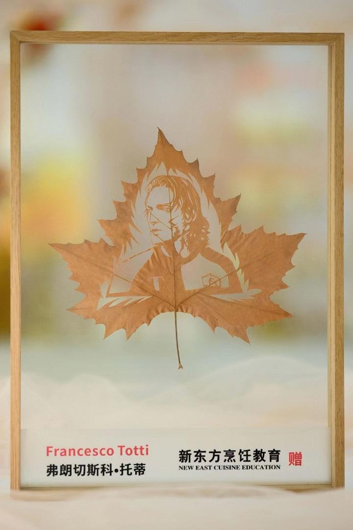 叶雕,是一种源于中国的传统民间艺术,早在唐宋时期就有记载,至今已有千年的历史。叶雕是世界非物质文化遗产,具有很强的收藏价值,是意义非凡的艺术瑰宝。新东方烹饪教育受邀参加2023世界超级球星欢迎晚宴,这是一场集美食、文化、激情与活力于一体的盛宴。晚宴上将送出刻有球星肖像叶雕作品,让球星领略到中国传统文化的独特韵味。