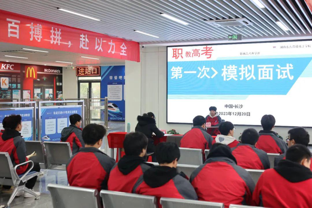 为了进一步做好单招工作,帮助学生提高竞争力,湖南万通组织开展单招模拟面试活动。此次面试参考历年单招面试设置题目、创设面试情境,力求最大限度模拟现场情景。老师们现场为学生提出改进意见的方式,指导学生规避面试误区,创建答题思路,为接下来的高职单招考试打下了基础。
