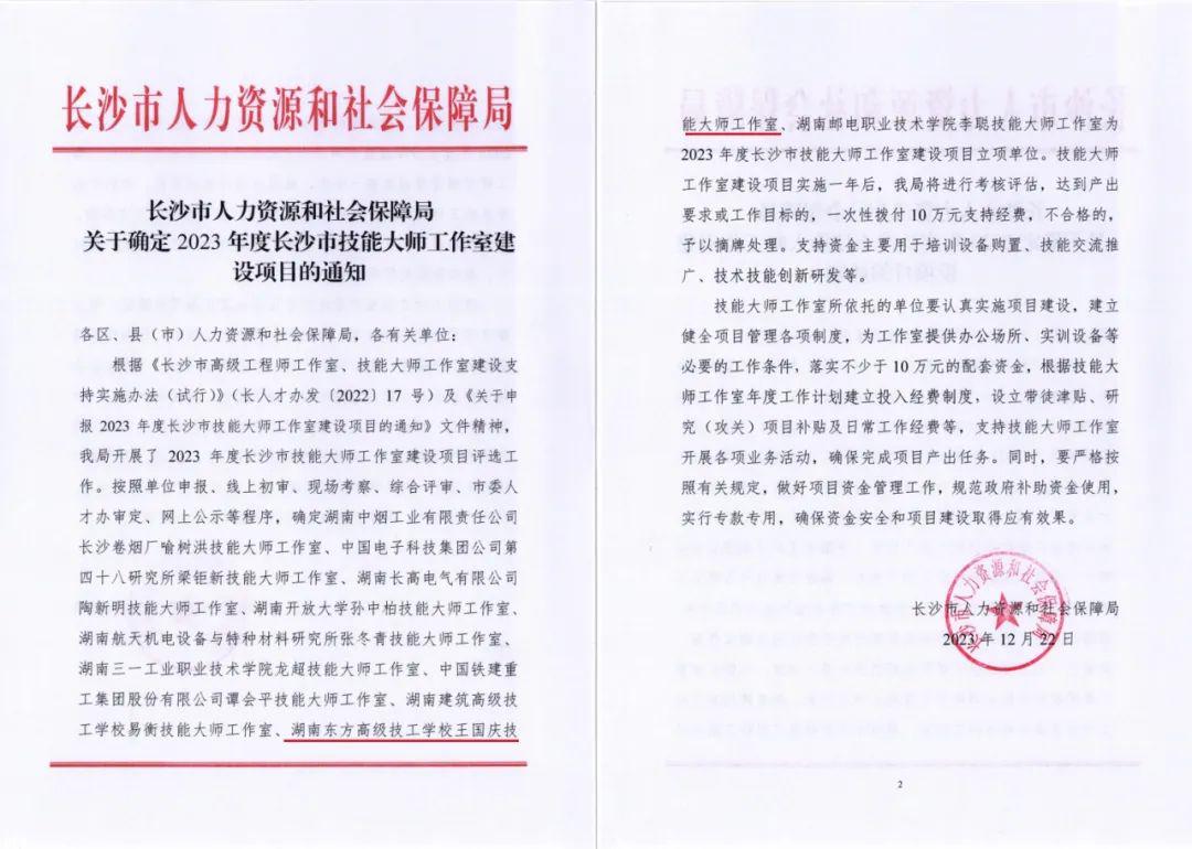 6. 湖南东方高级技工学校王国庆技能大师工作室项目获批建设!