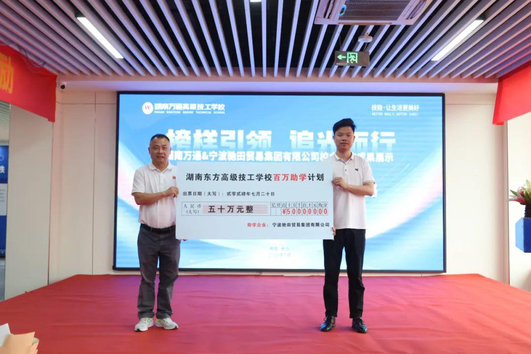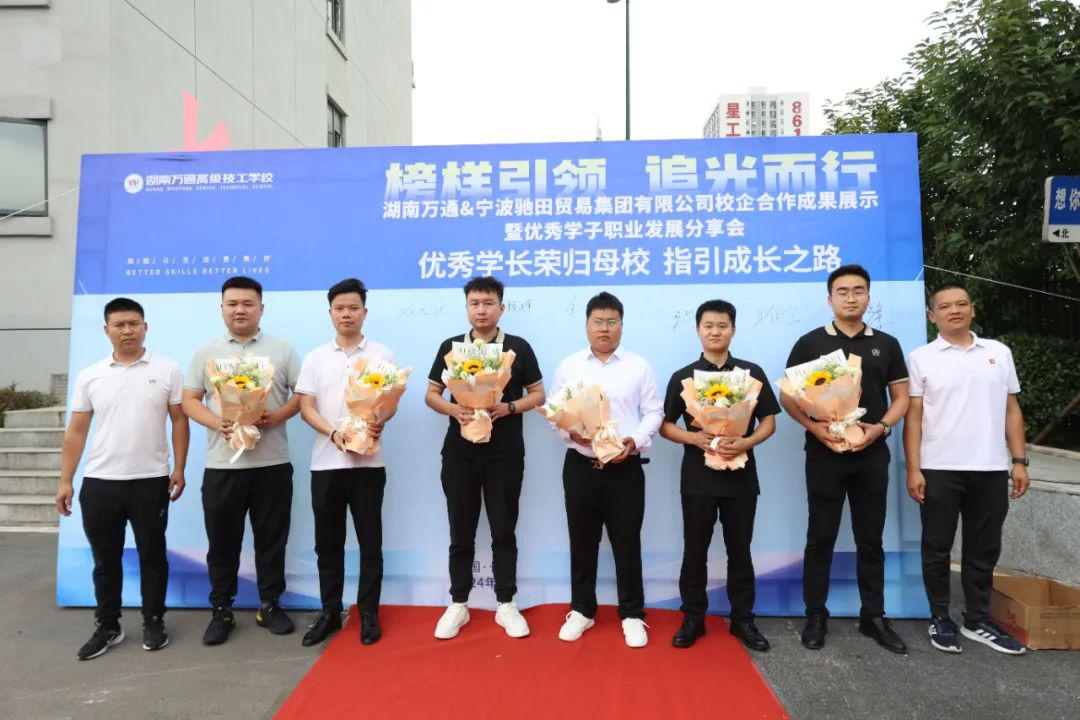 7月20日,就职于宁波驰田贸易集团的6位校友返校参加“校企合作成果展示暨优秀学子职业发展分享会”。为表达对母校与恩师的感谢,几位校友献上致谢锦旗与荣誉牌匾。近年来,得益于优秀人才的供给,湖南万通已成为宁波驰田贸易集团的校企合作重要伙伴,企业对我校的育人质量与授课模式表示十分认可。校友胡志铭代表企业宣布,宁波驰田贸易集团有限公司捐赠50万元企业助学金,用于学校专业发展建设。